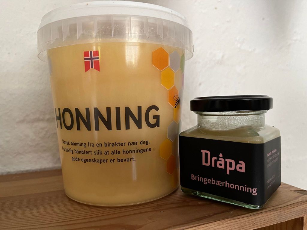Vi samarbeider med Honning fra Valdres, som Erlend Bringsli og Ante Nilsson startet i 2020. Sammen har de to utviklet merkenavnet Dråpa. I fjor sommer gikk vi på birøkterkurs hos Erlend og Ante.